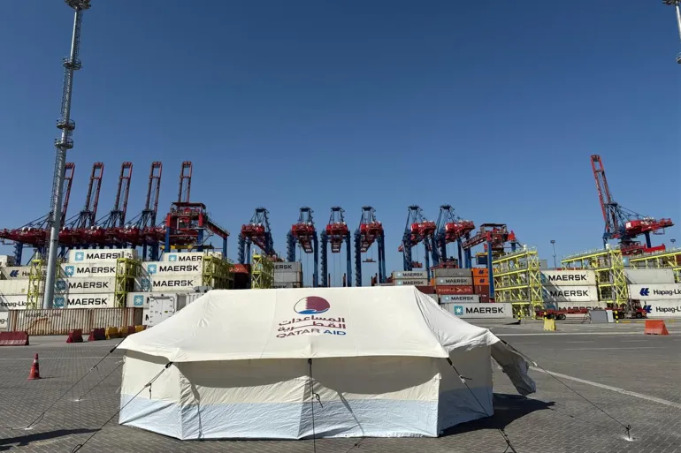 Qatar : Une barge qatarie a accosté au port de Port Said en Égypte, transportant 29 200 tentes d’hébergement destinées à soutenir les familles palestiniennes affectées dans la bande de Gaza.